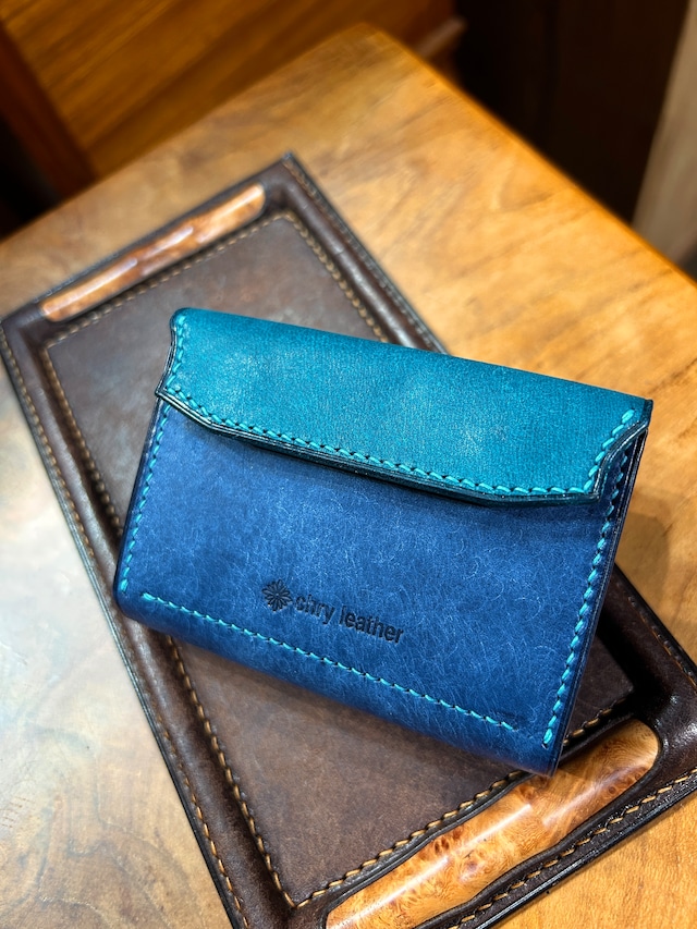 レザーキーホルダー クロコ藍染め×ブッテーロ ブルー