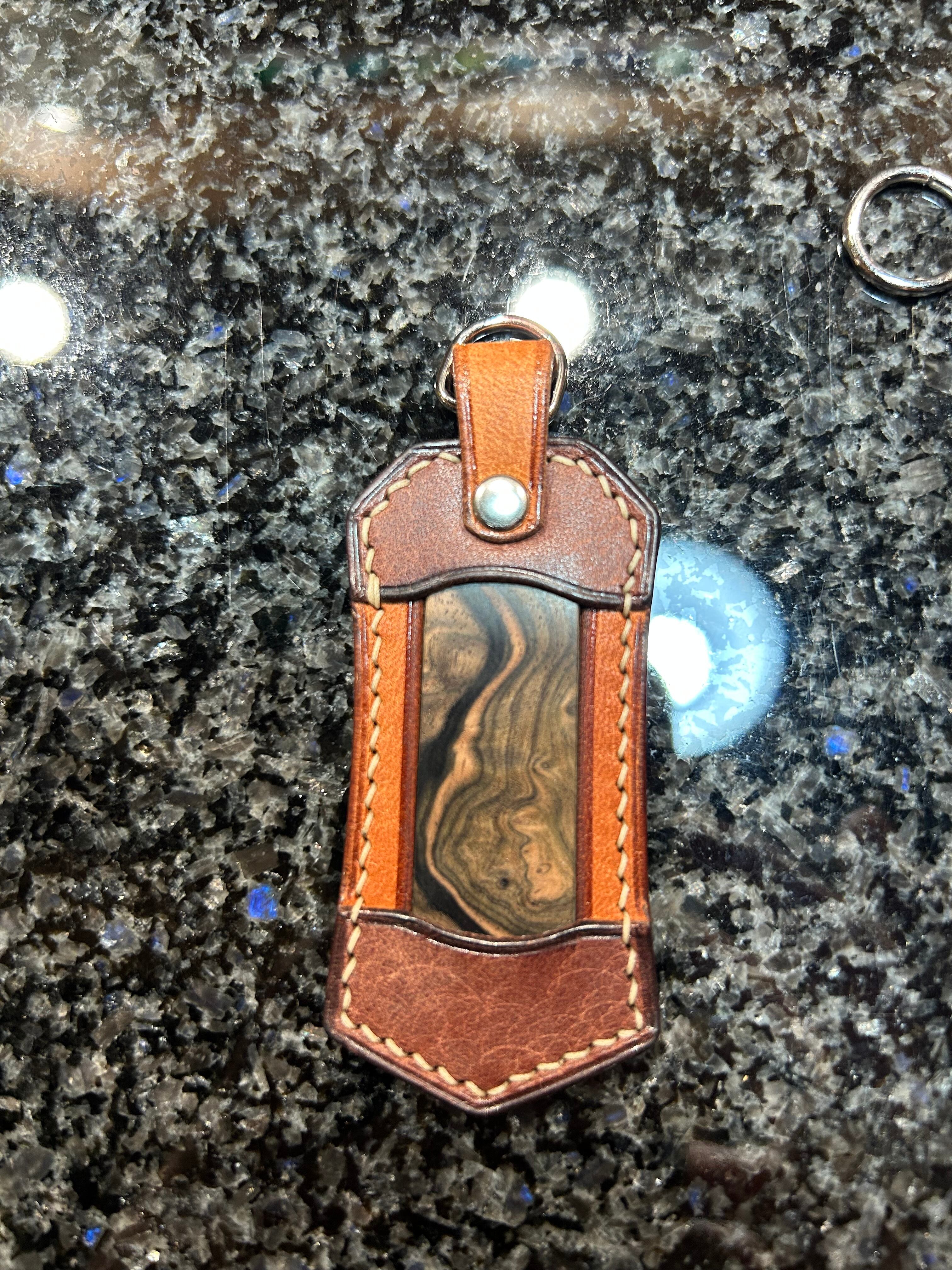 銘木は魅力的な表情の所をトリミングして制作する為、形、大きさは一つ一つ違いそれに合わせ革をカットして制作しております。
