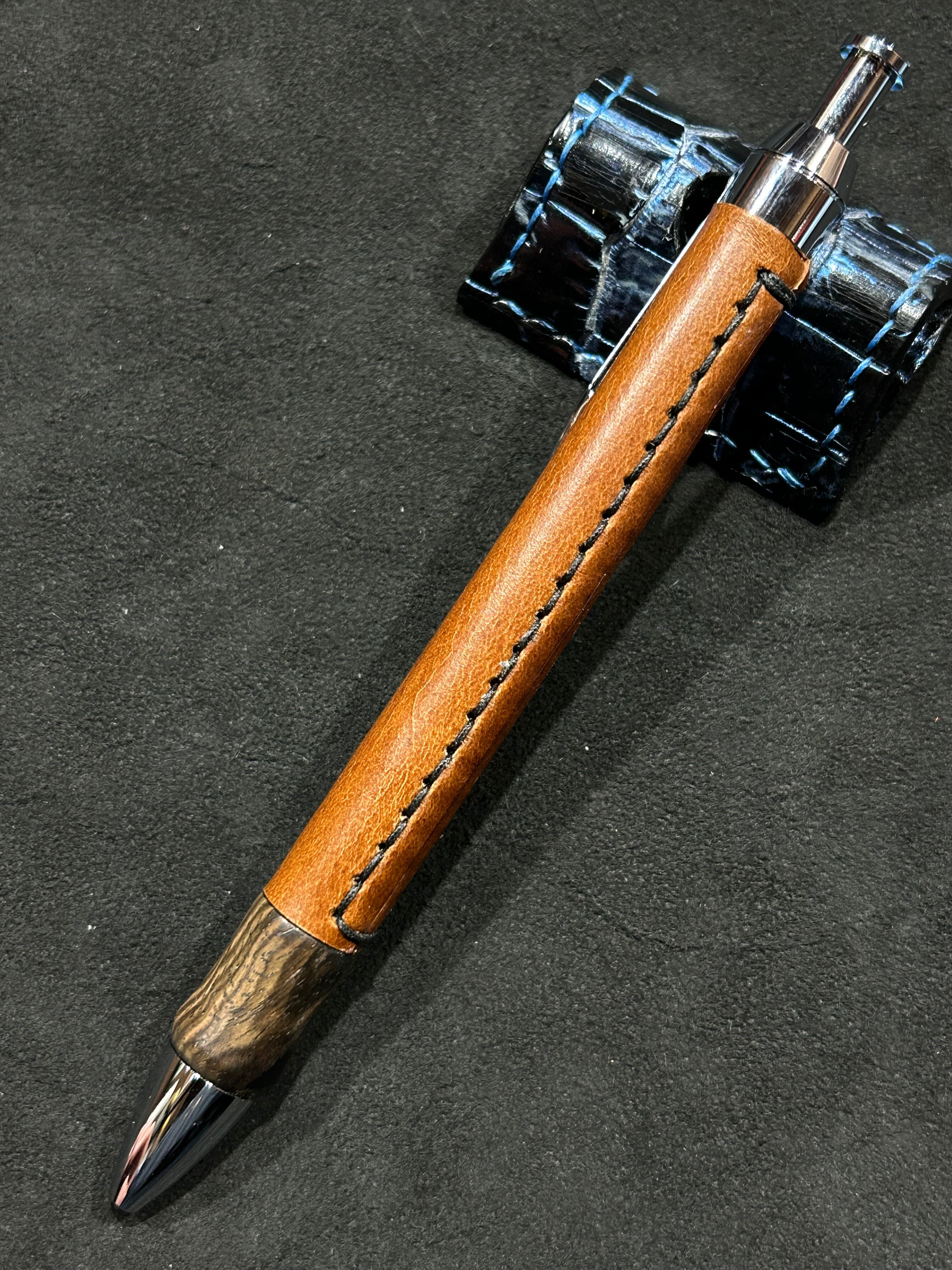 革木軸ペン fusion 黒檀 瘤×ブッテーロ キャメル 三神1000