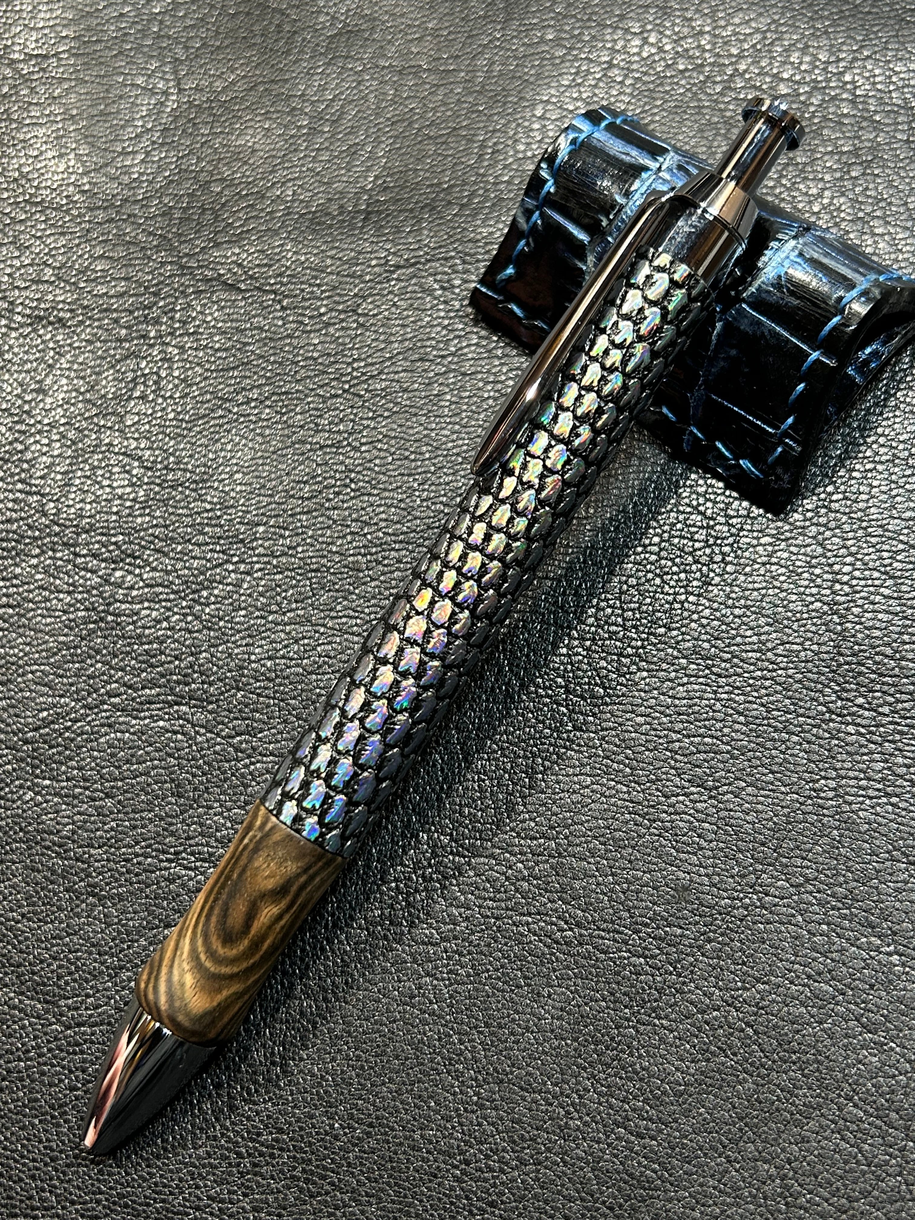 革木軸ペン fusion Ver.1 リザード ホログラム×黒檀 瘤 三神1000