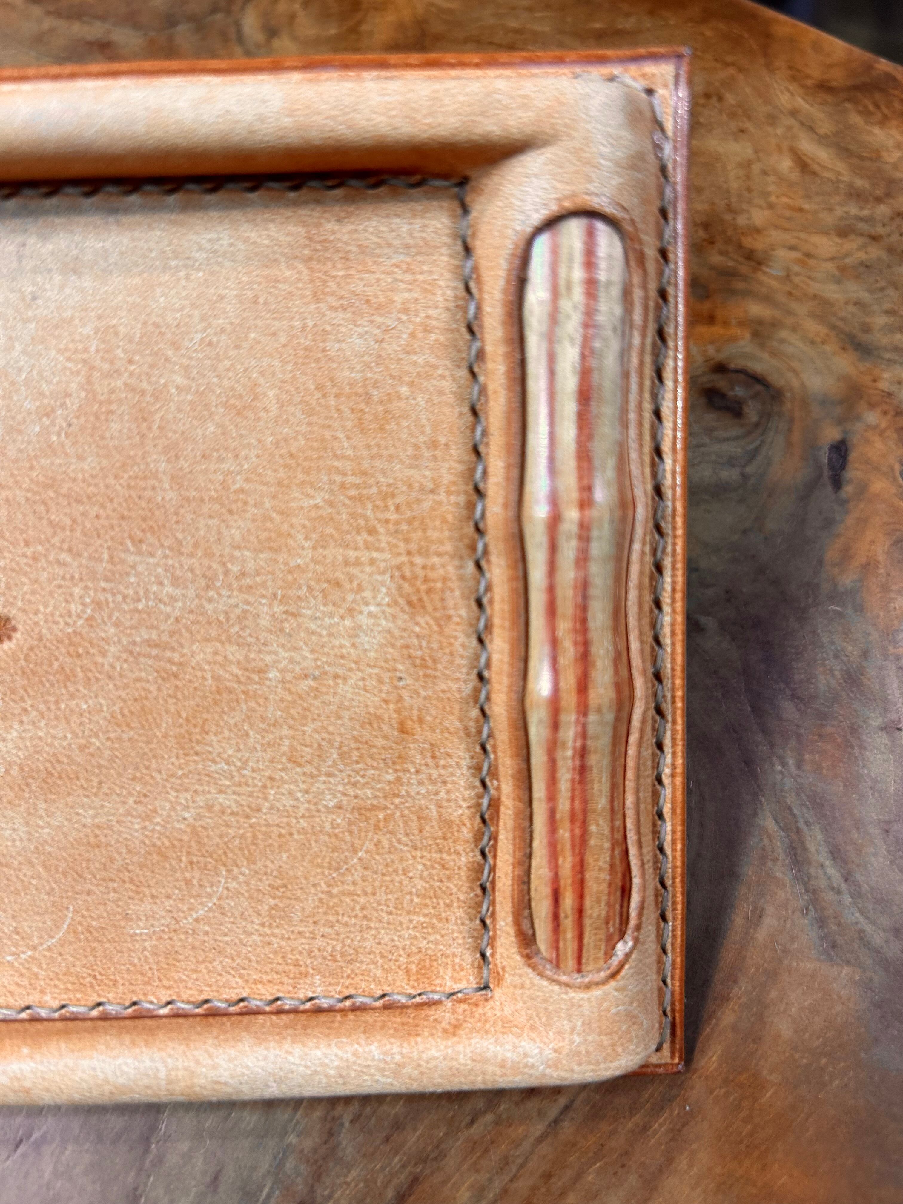 革のしなやかさと銘木の自然が生み出した美しい杢