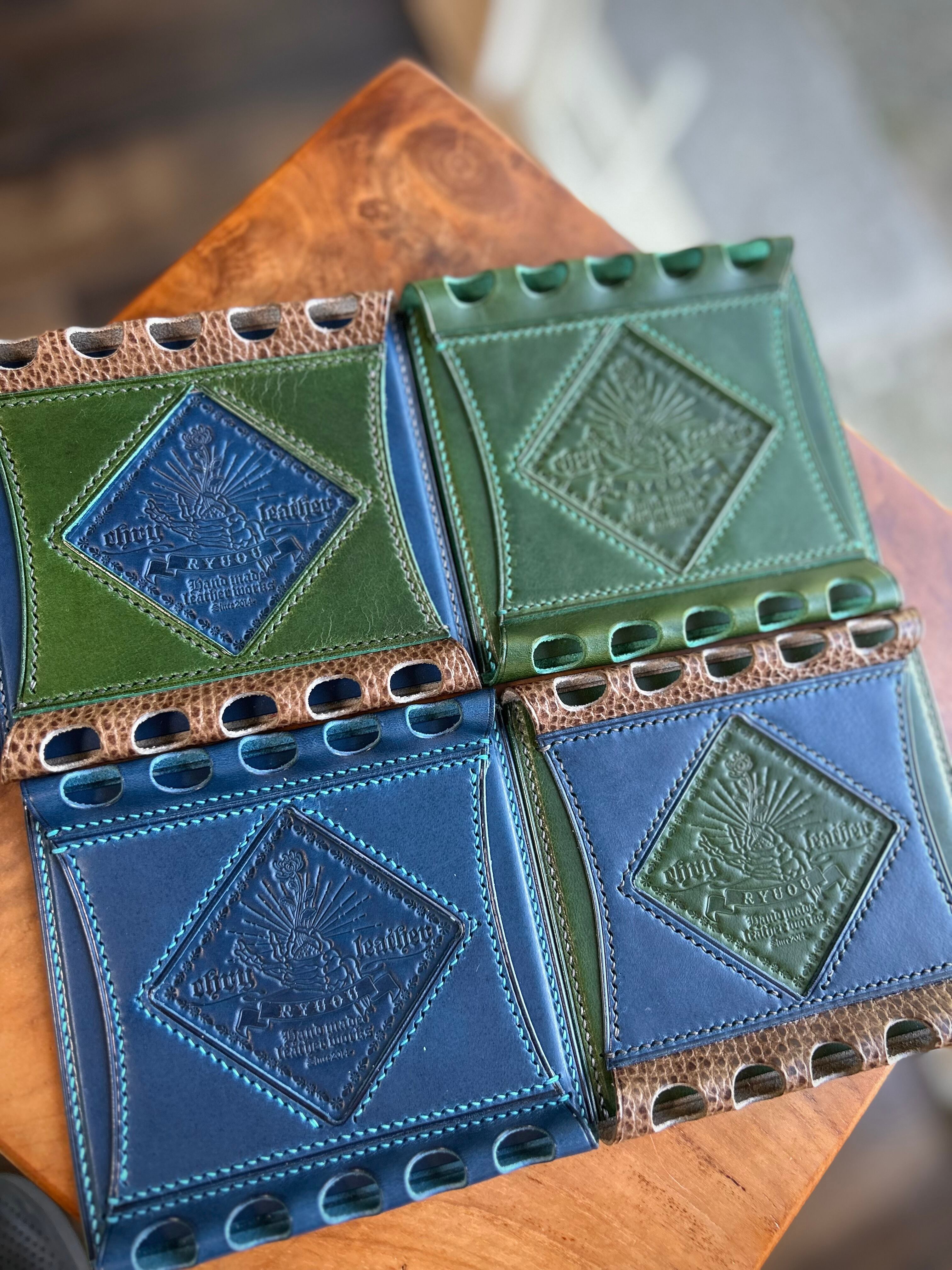レザーペントレスト 5本用 カスタムメイドver.Ty1 ブッテーロ グリーン×ドラーロ グレー×ブッテーロ ブルー