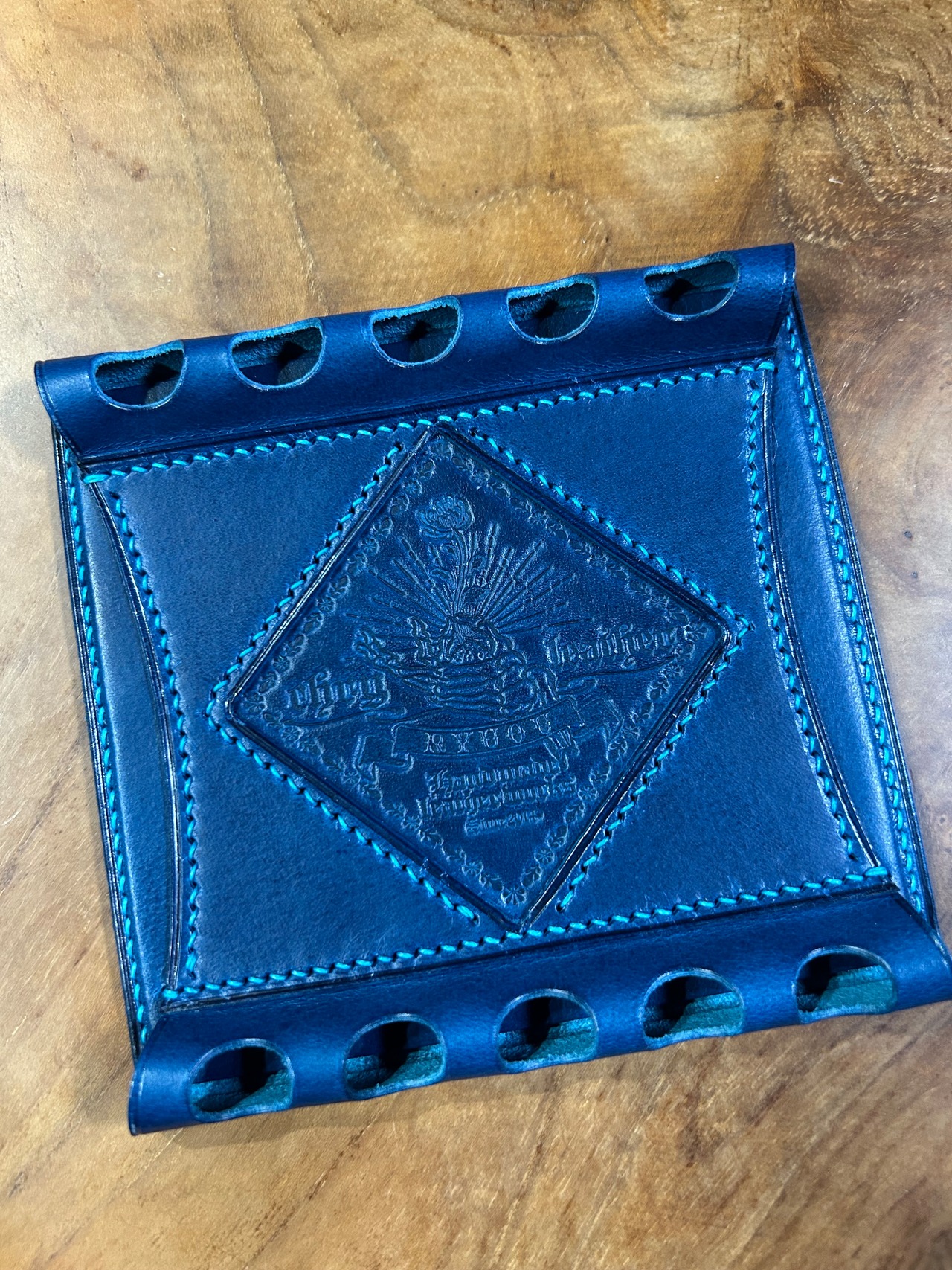 革で制作した、ペントレイにもペンレストにもなることから