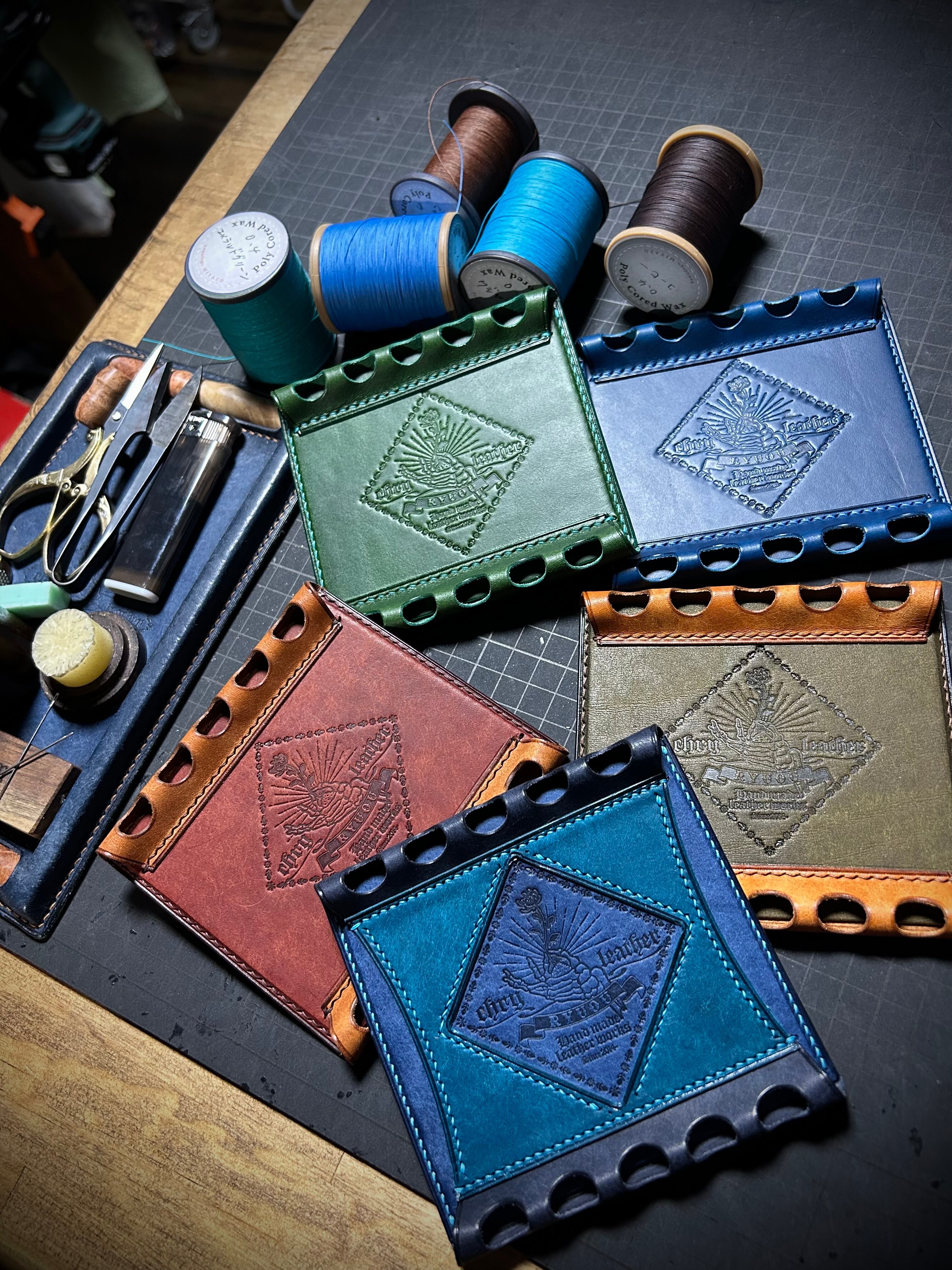 革で制作した、ペントレイにもペンレストにもなることから