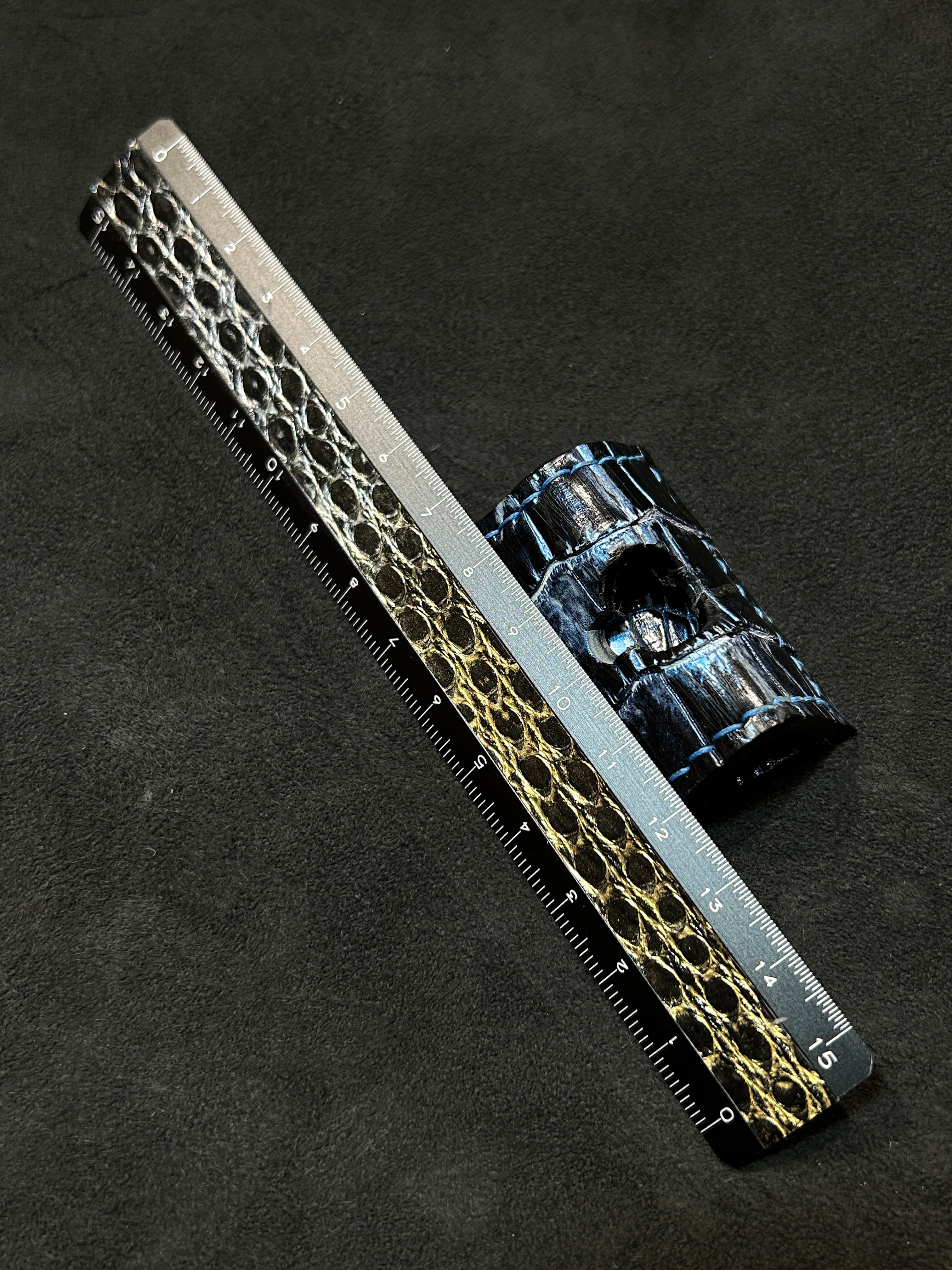 めくれ防止の為、面一では無く革を定規より薄くしてある場合があります。