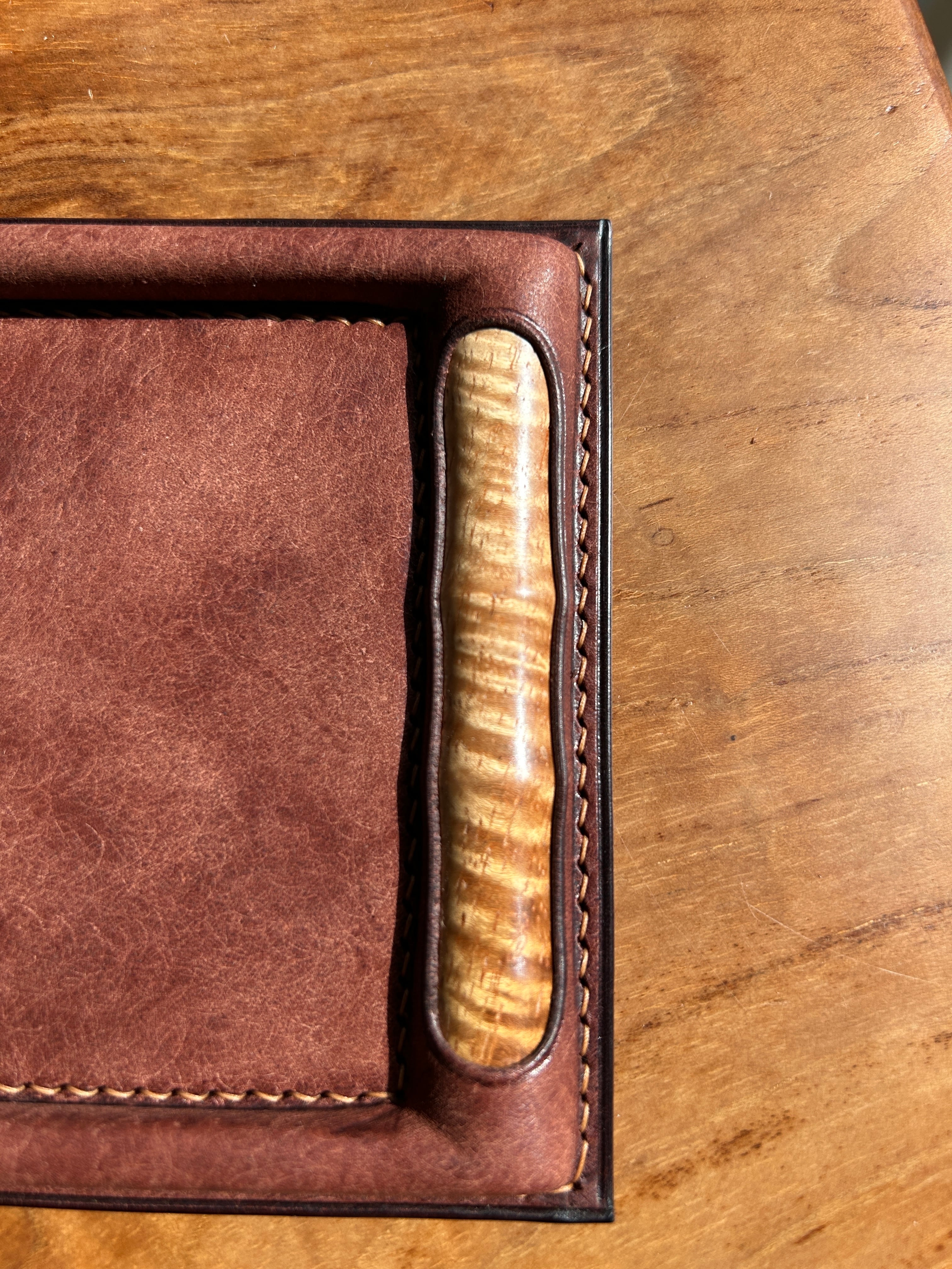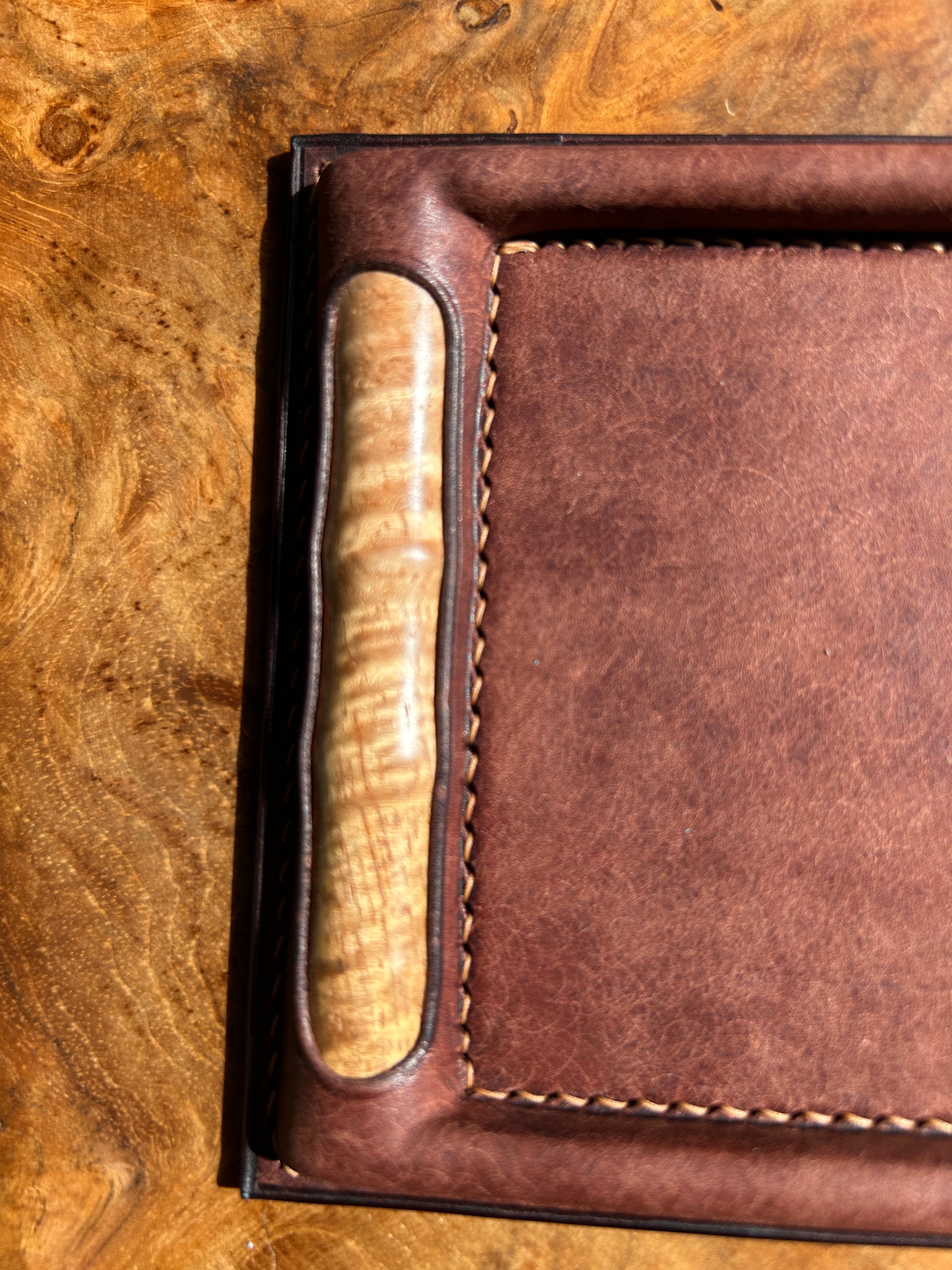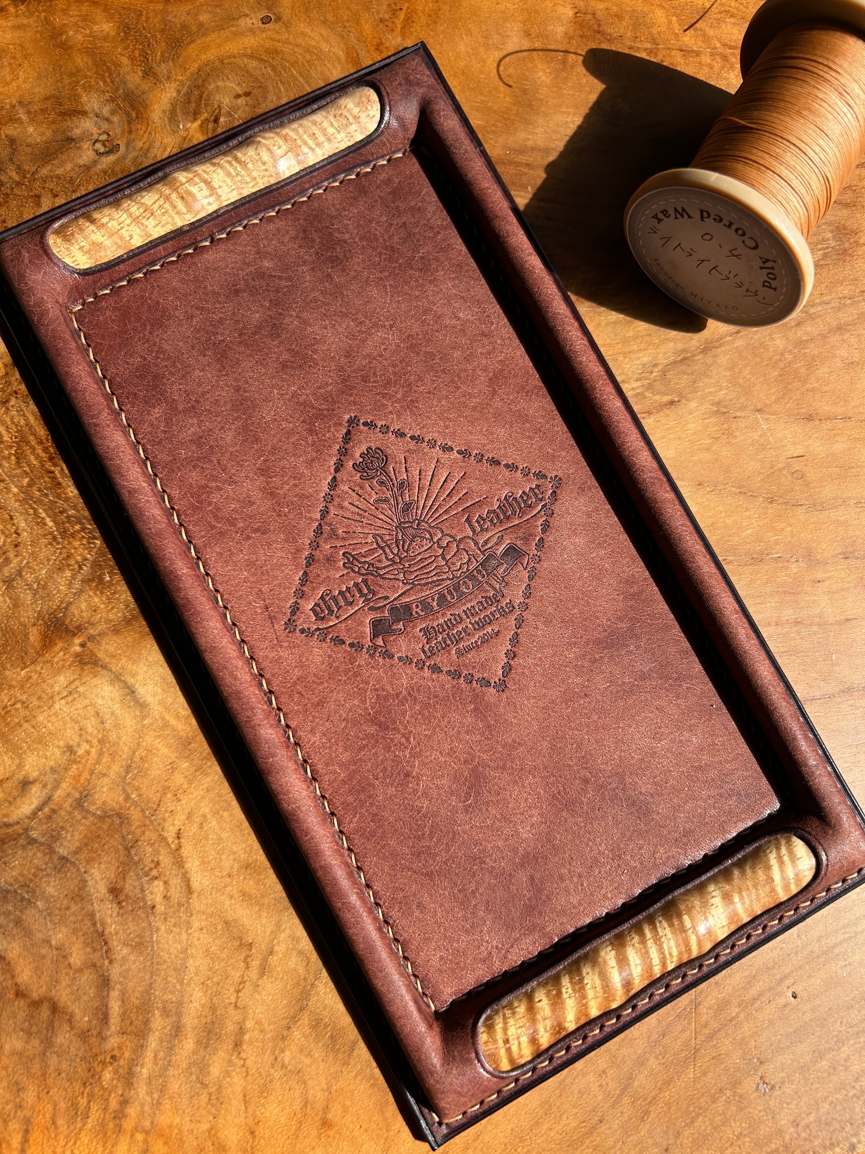 革のしなやかさと銘木の自然が生み出した美しい杢