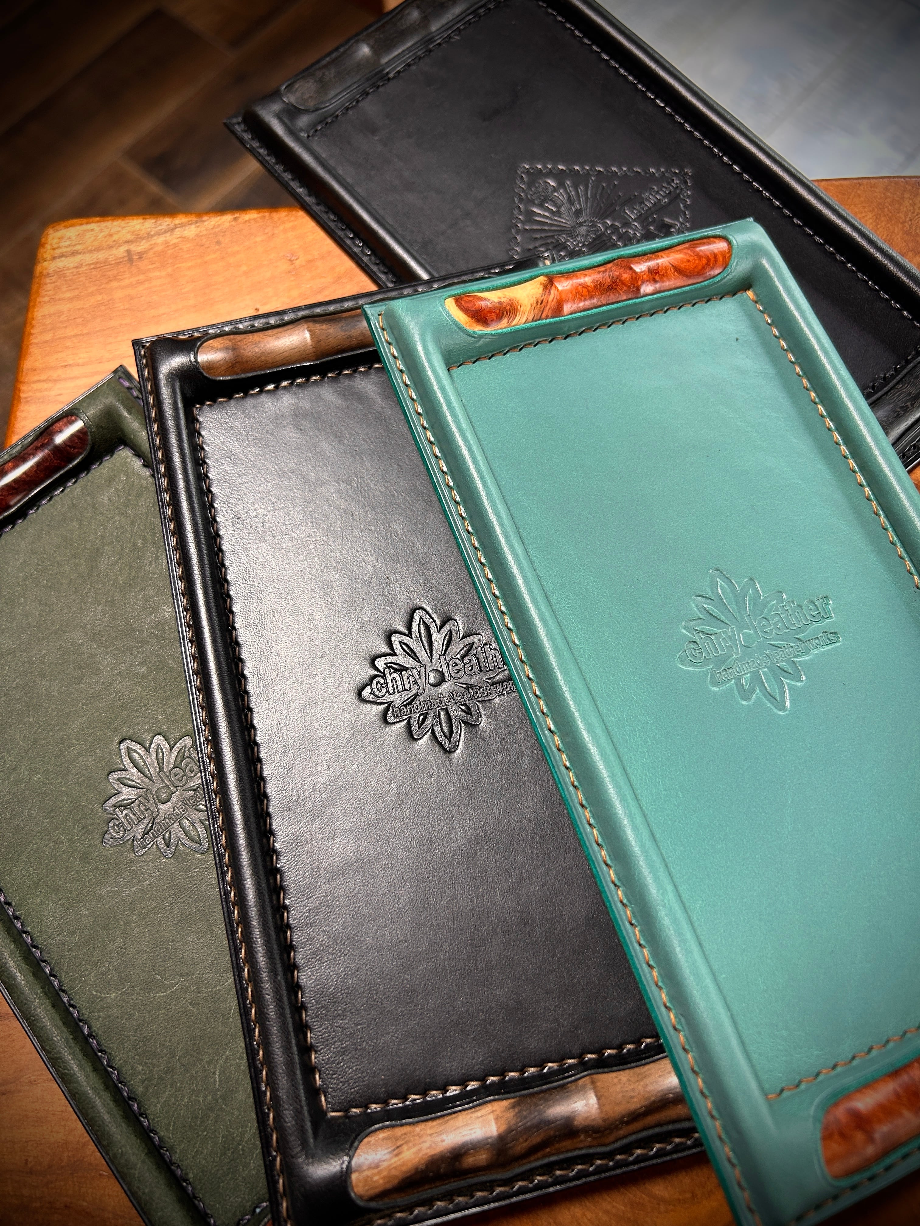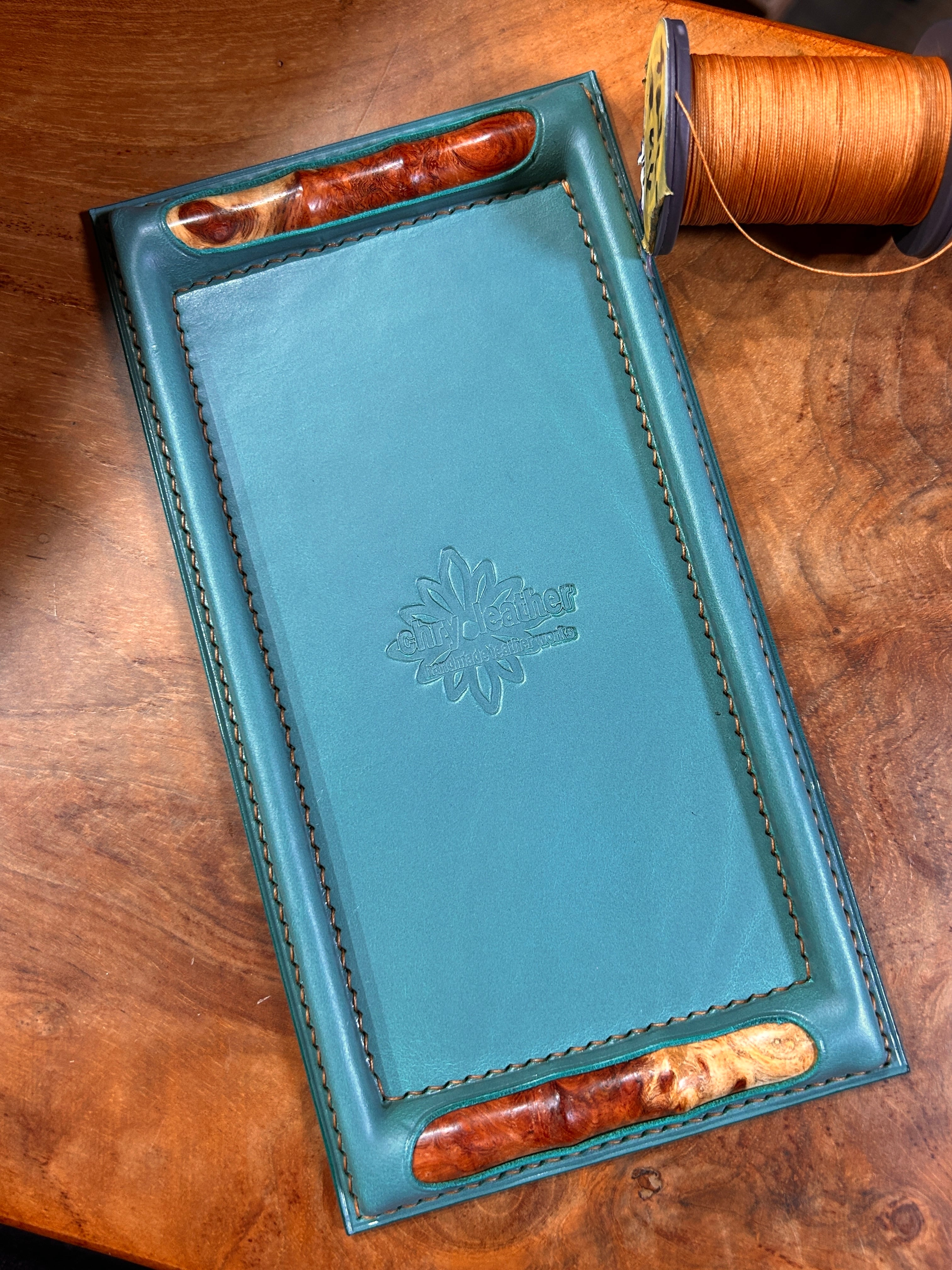 革銘木マルチトレイ ブッテーロ ターコイズ×ターコイズ×花梨瘤紅白
