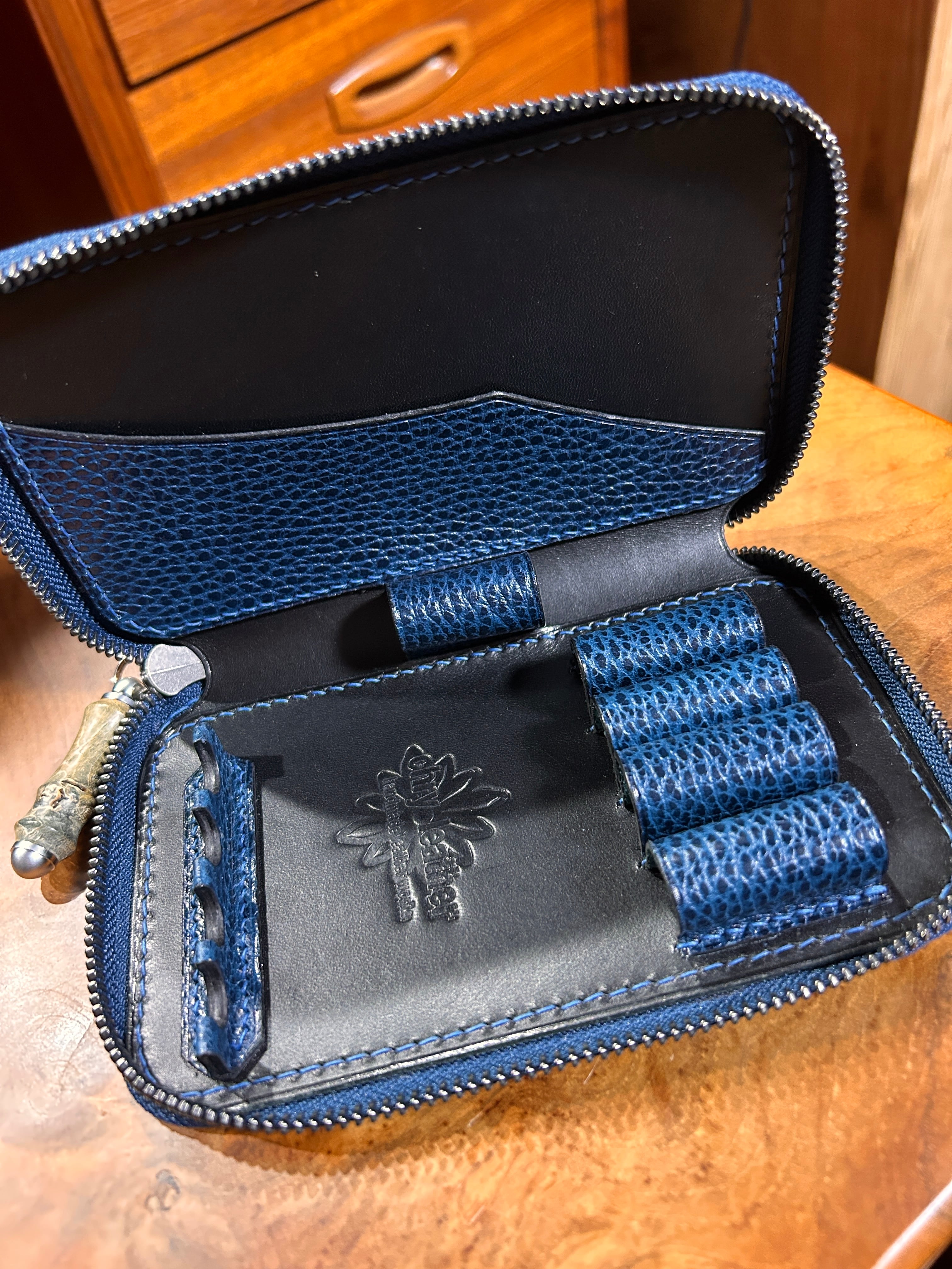 ペンケースミドル ブッテーロ黒×ドラーロブルー