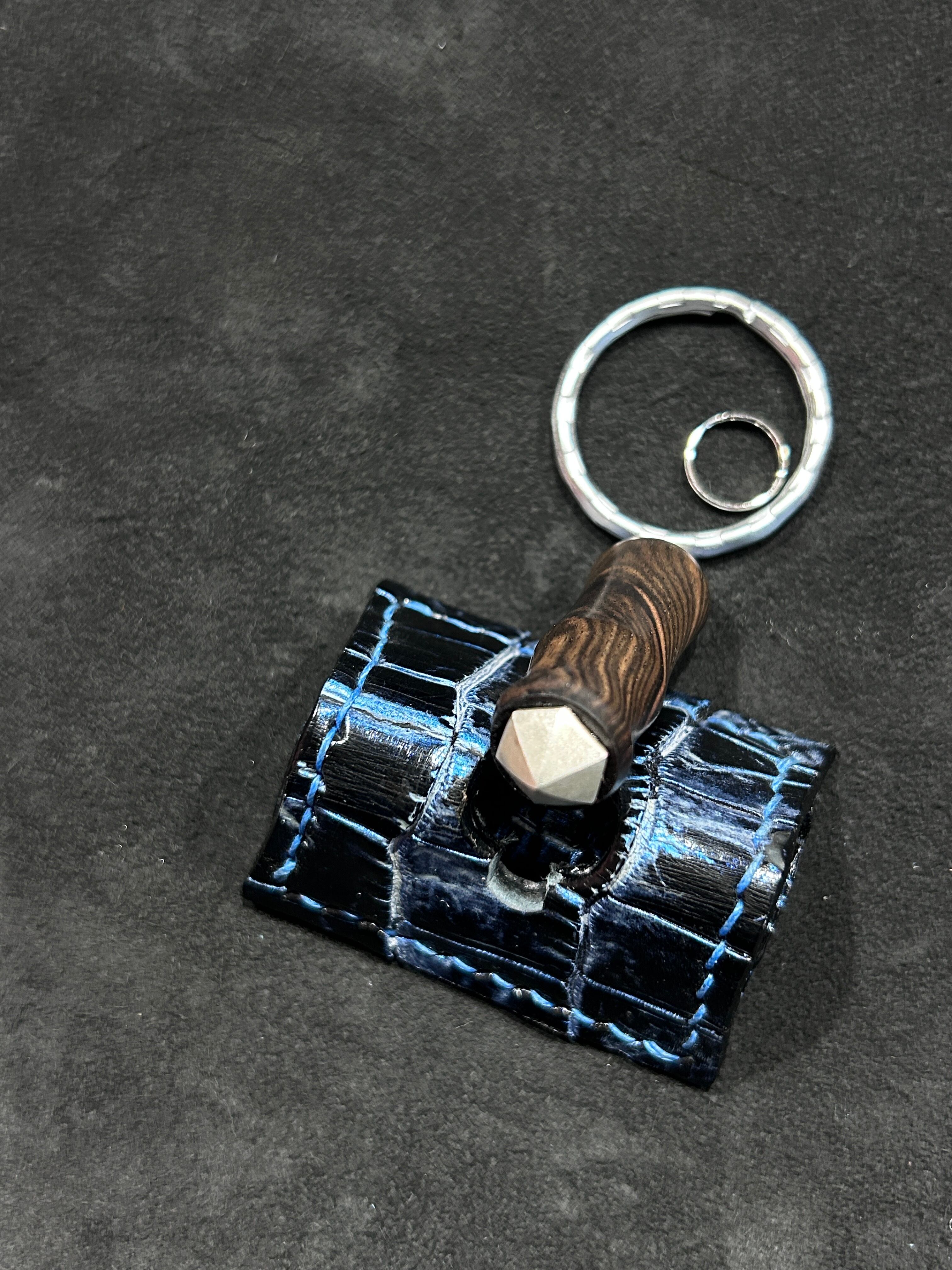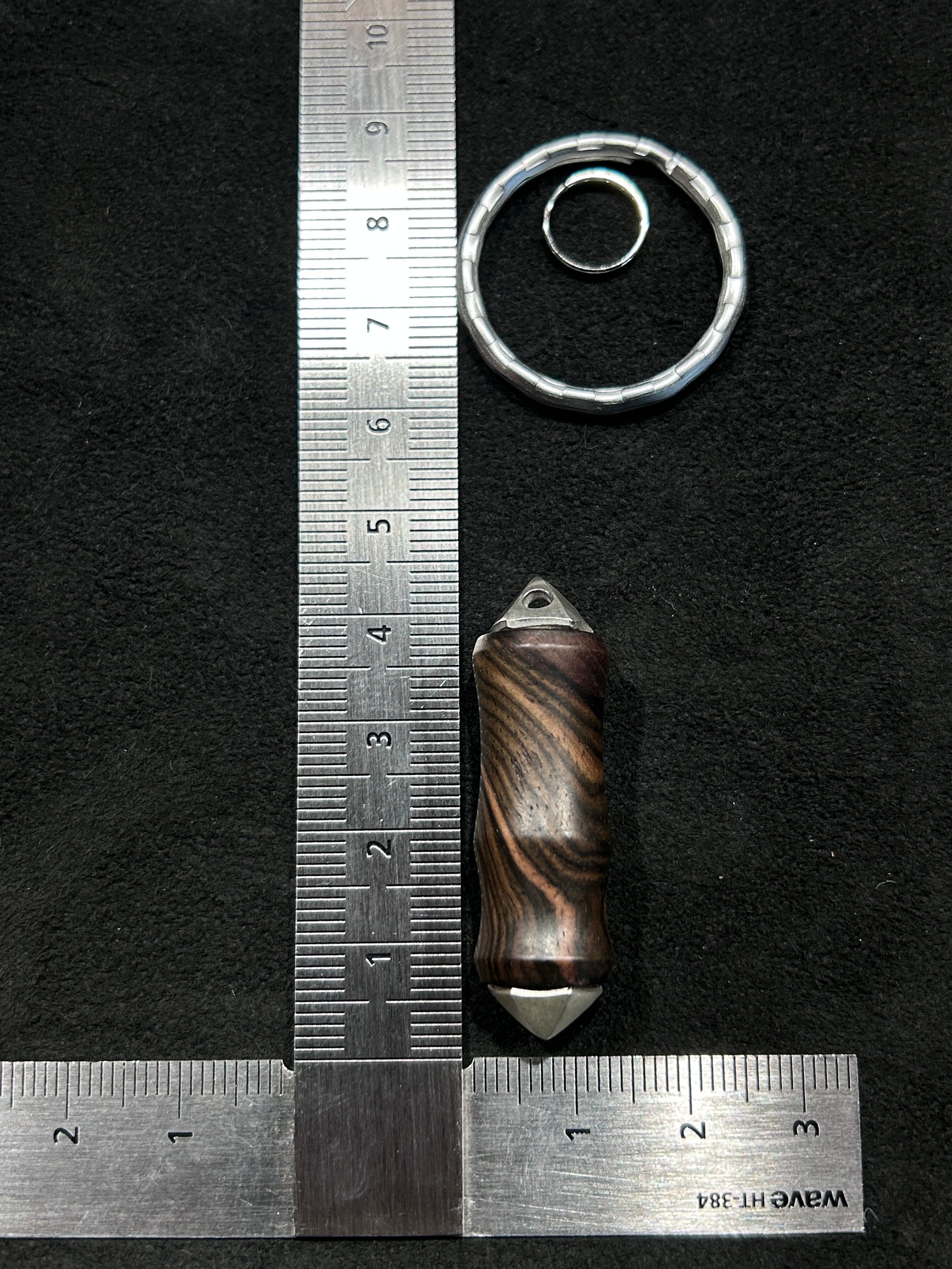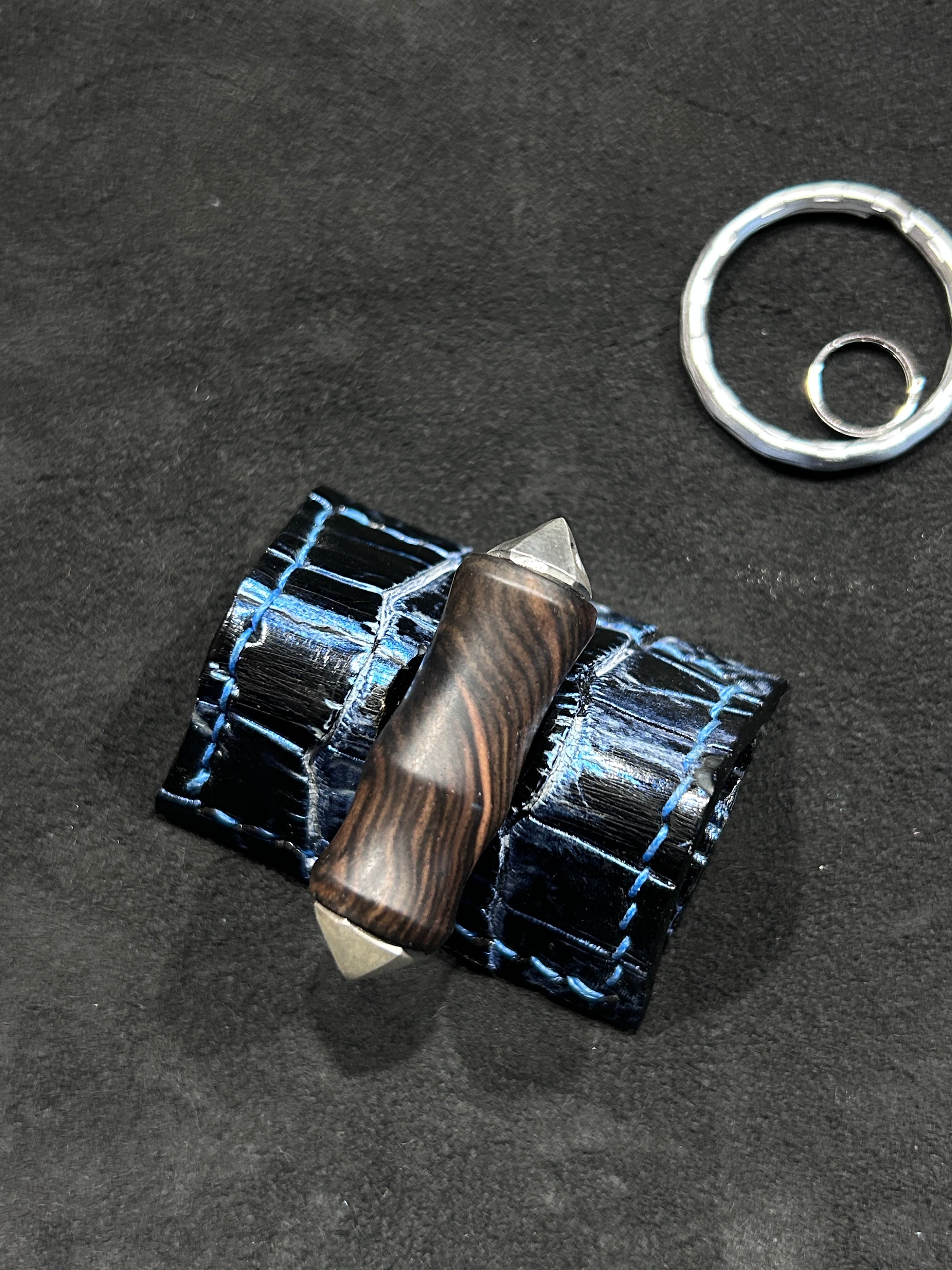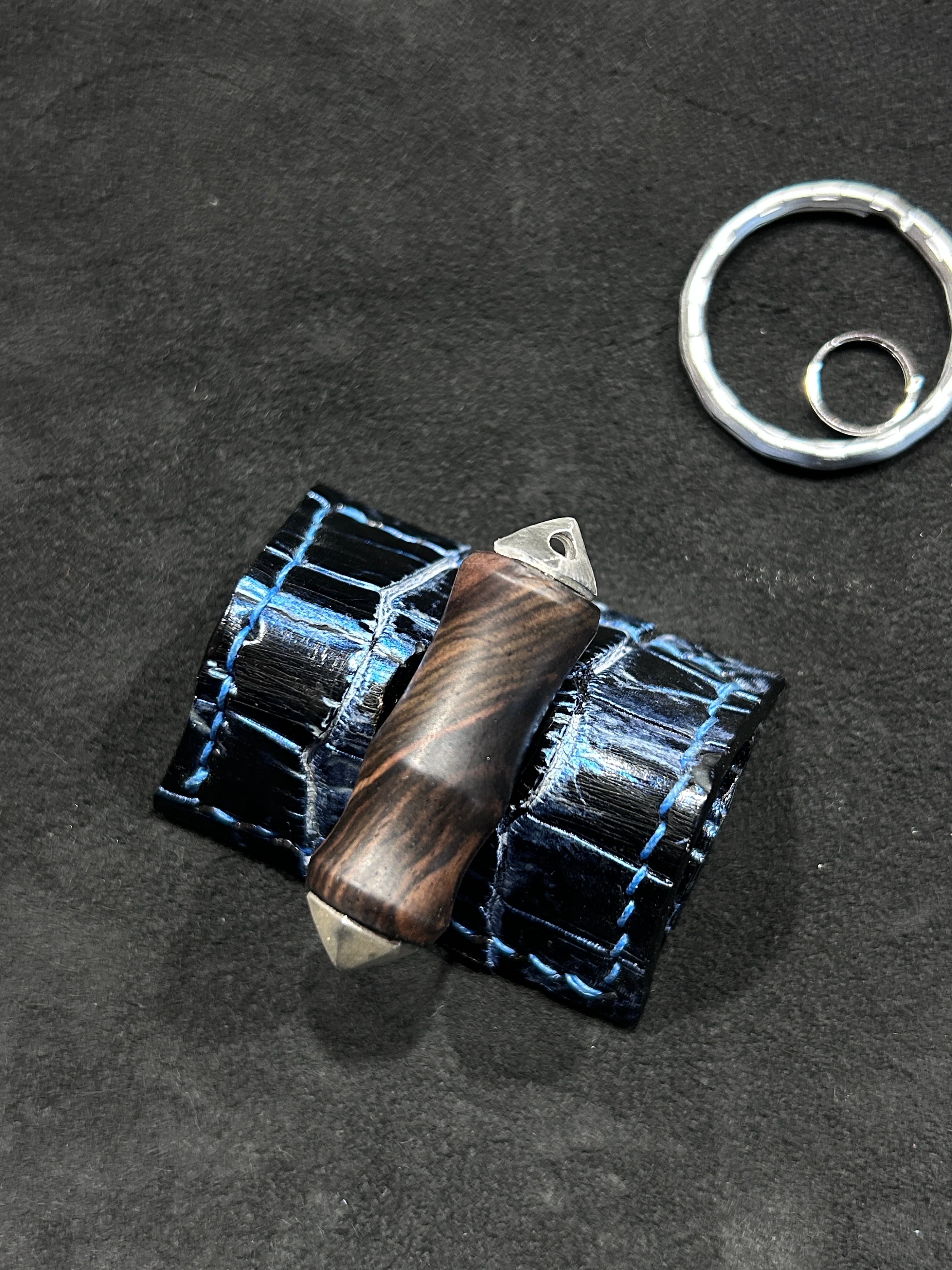 木軸キーホルダー 黒檀瘤 クライレザーオリジナルシルバー925金具 アウトレット 8266k