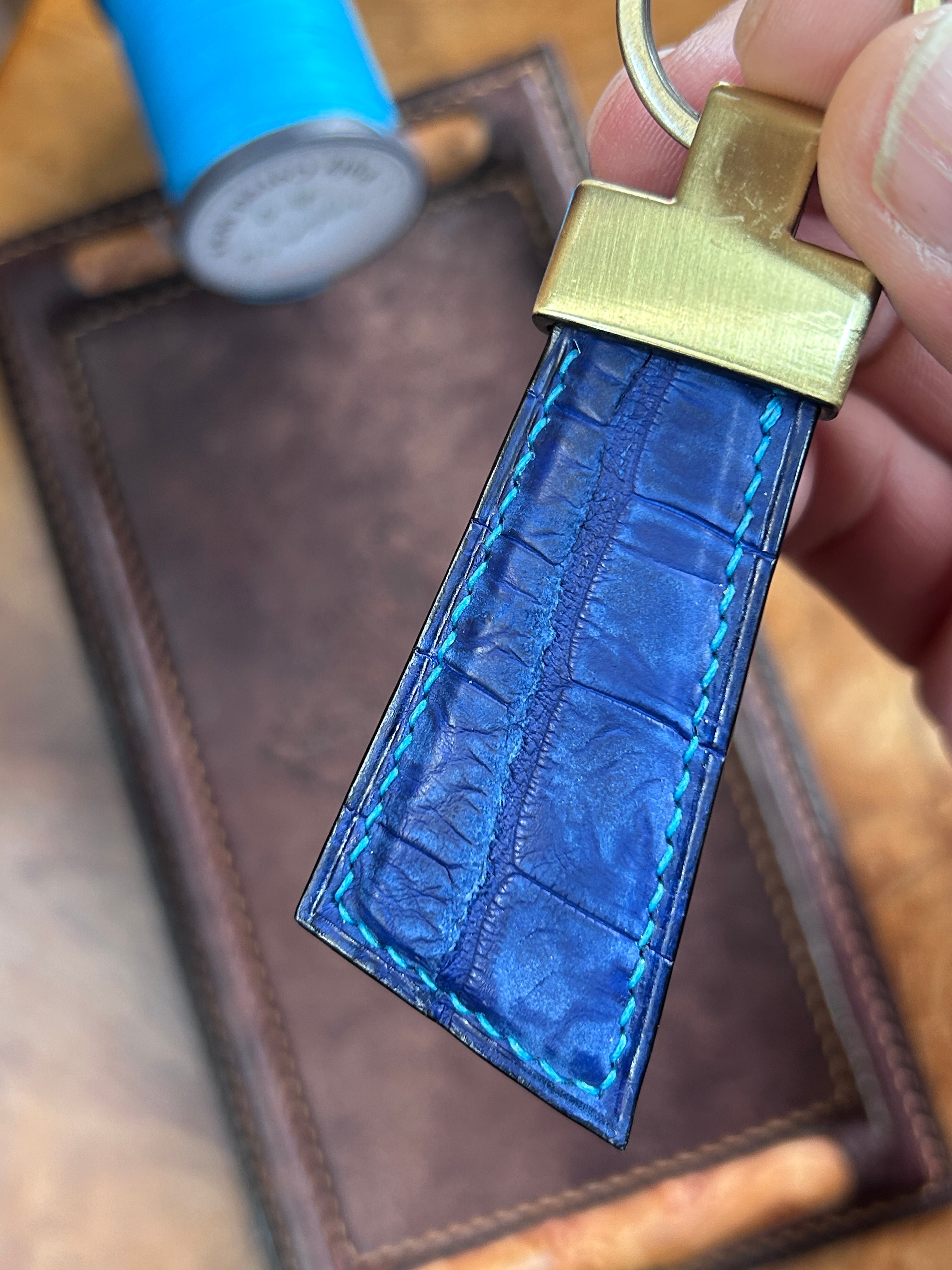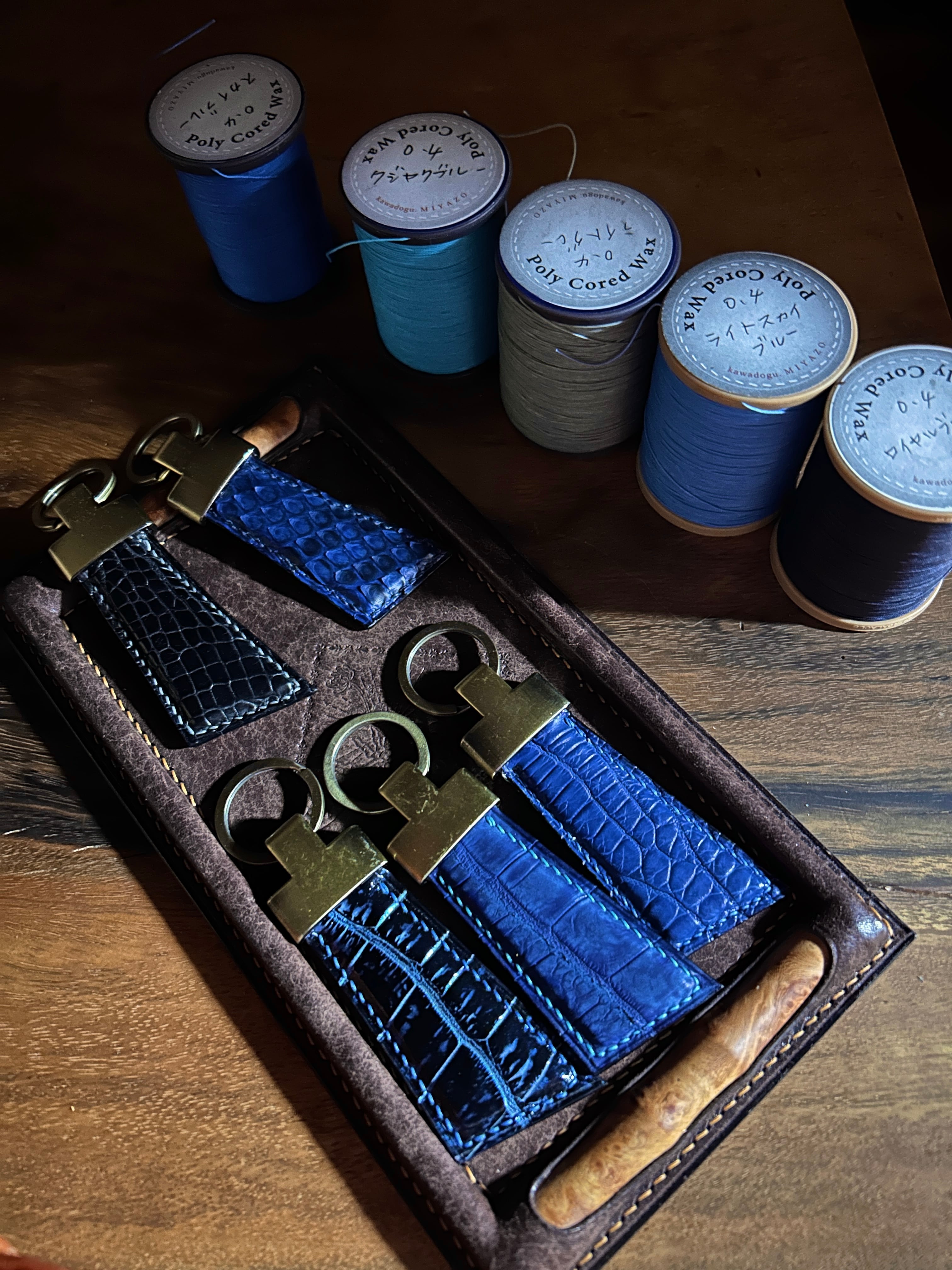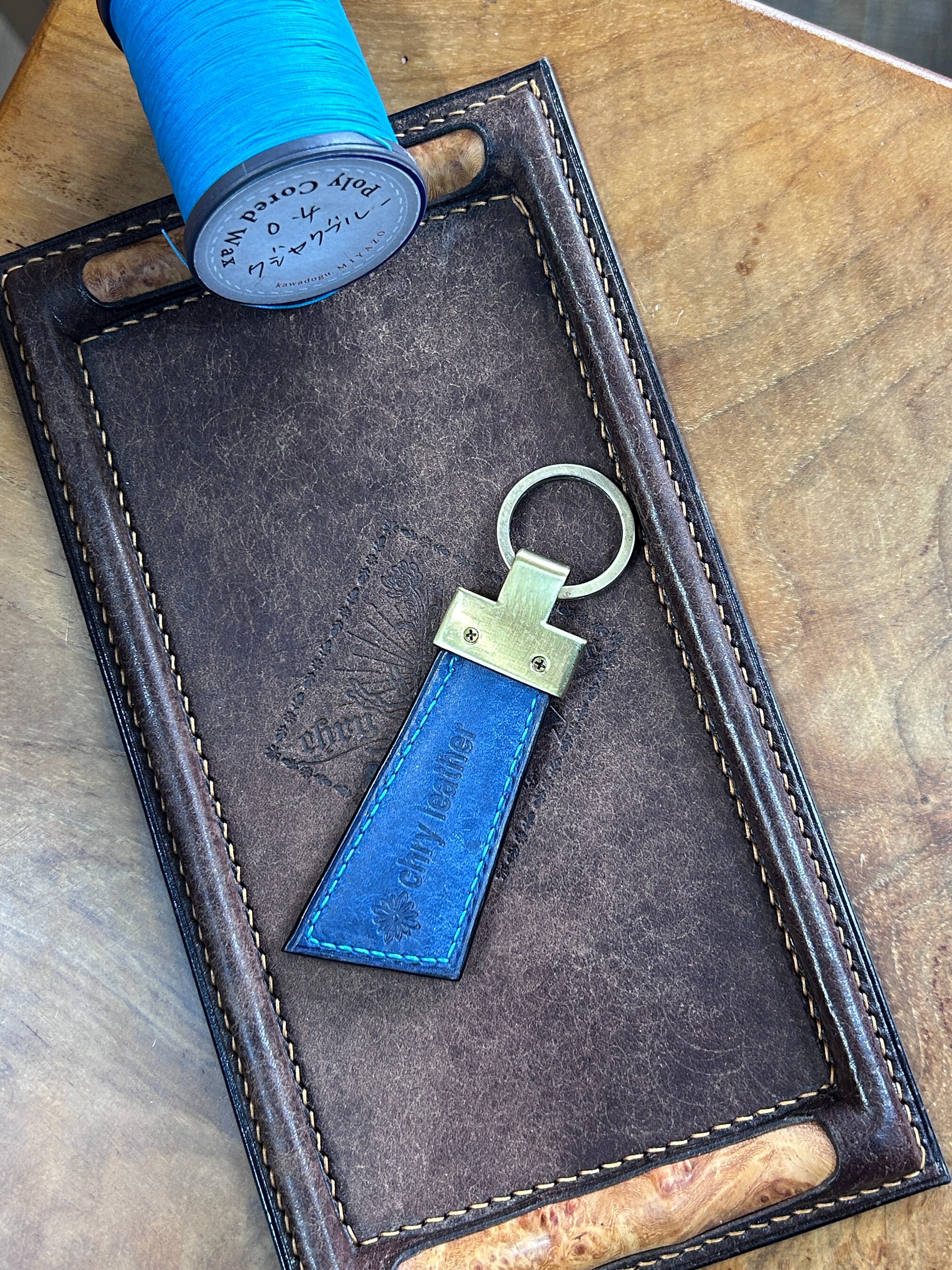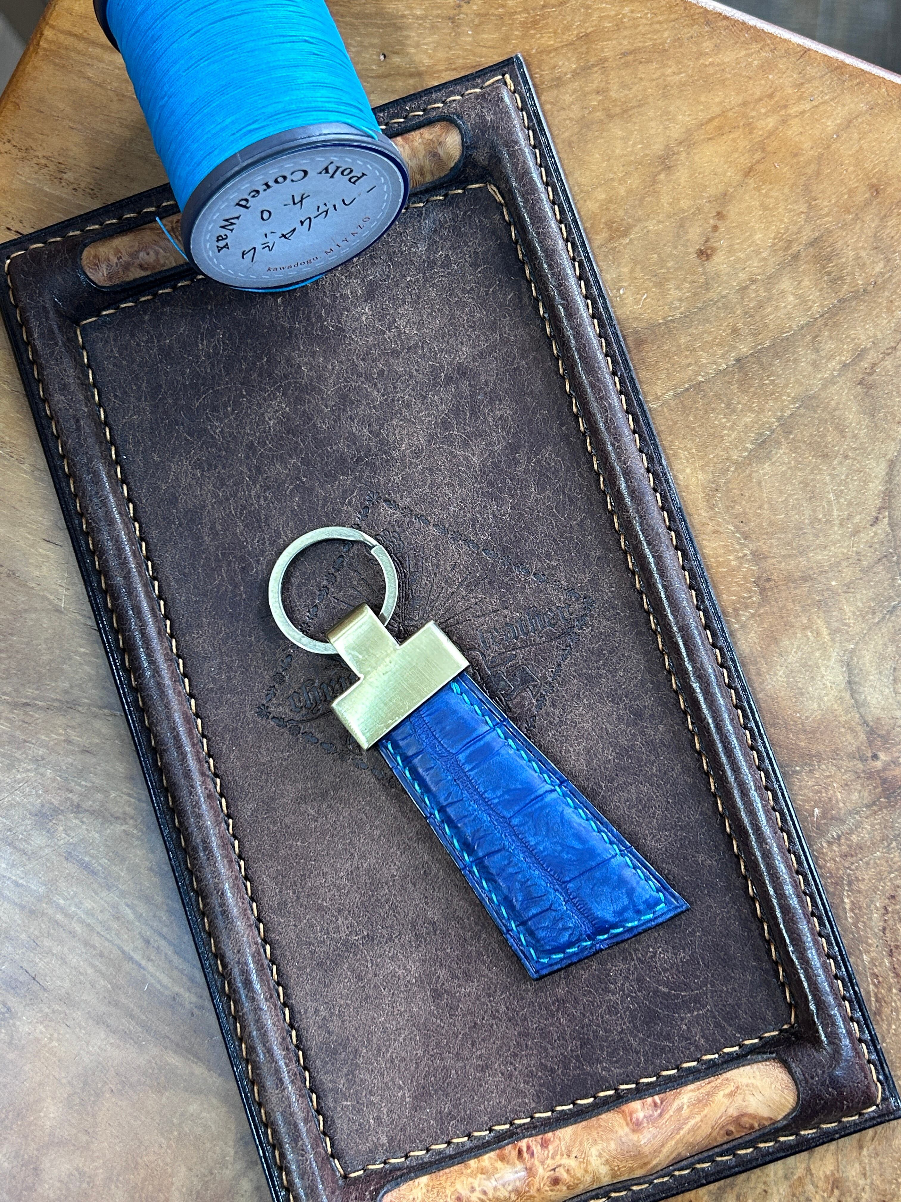 レザーキーホルダー ポロサス藍染めヌバック×マルゴー コバルト