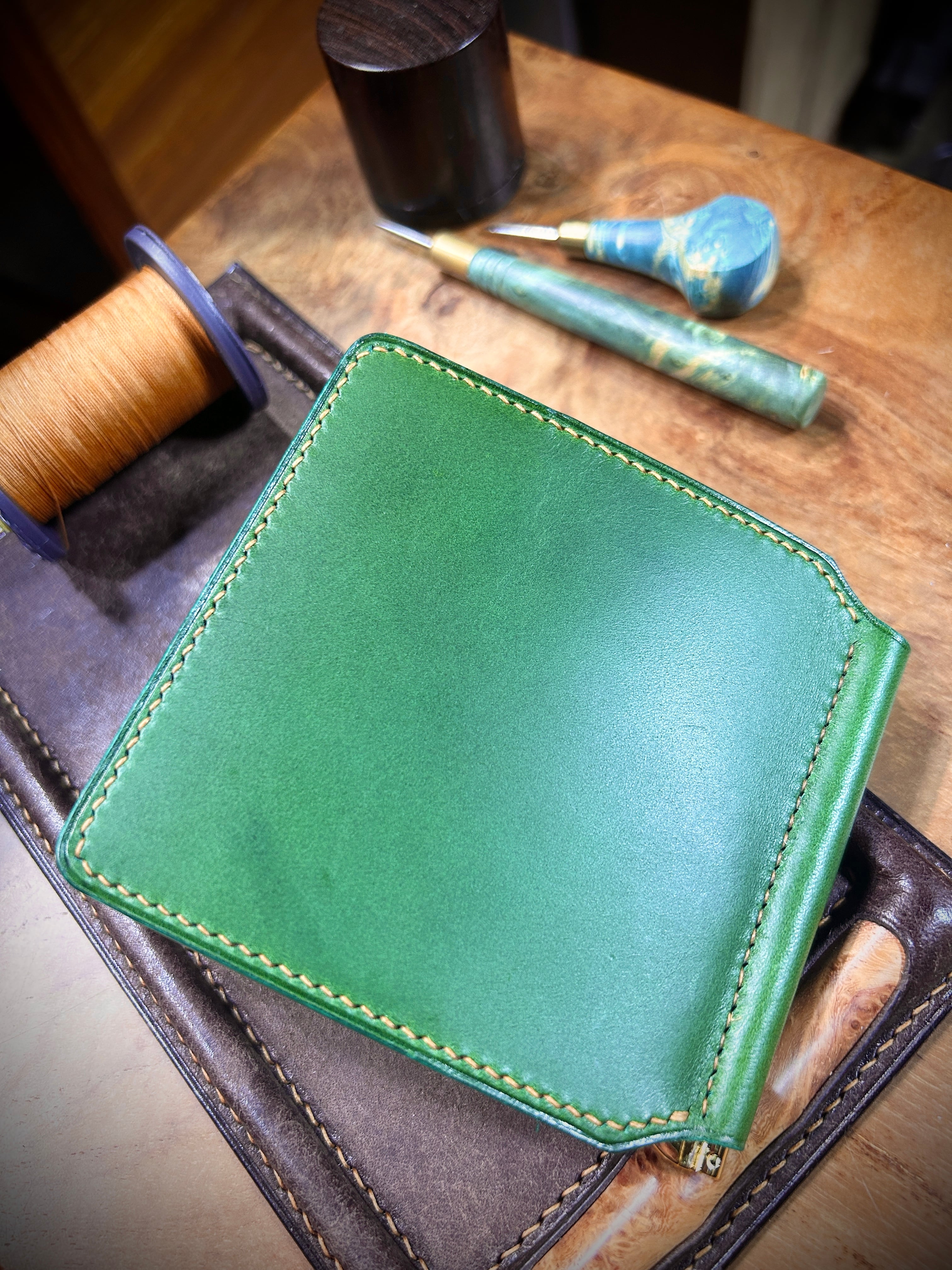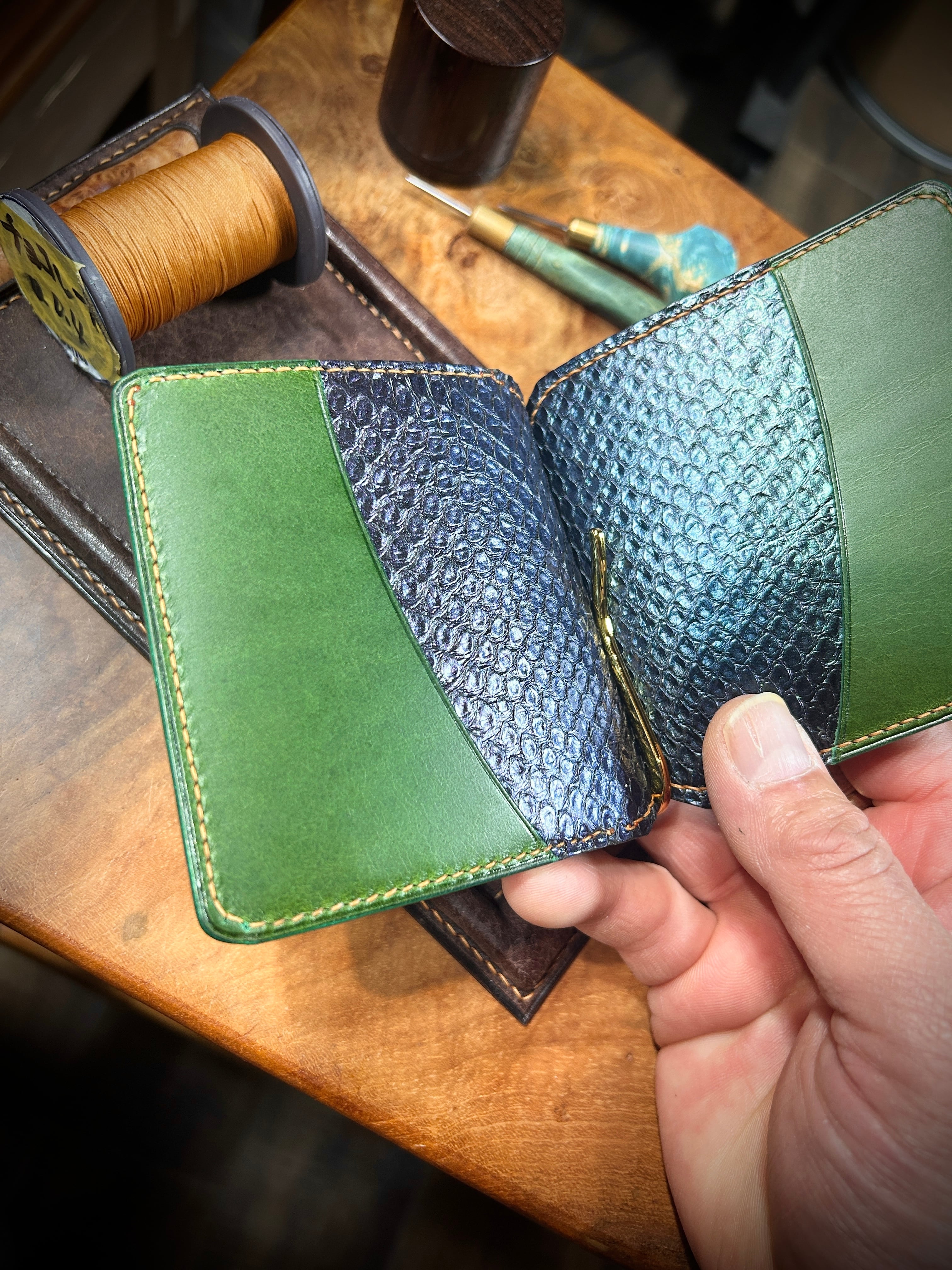 札バサミ式ウォレット ブッテーロ グリーン×パイソン オーロラブルー