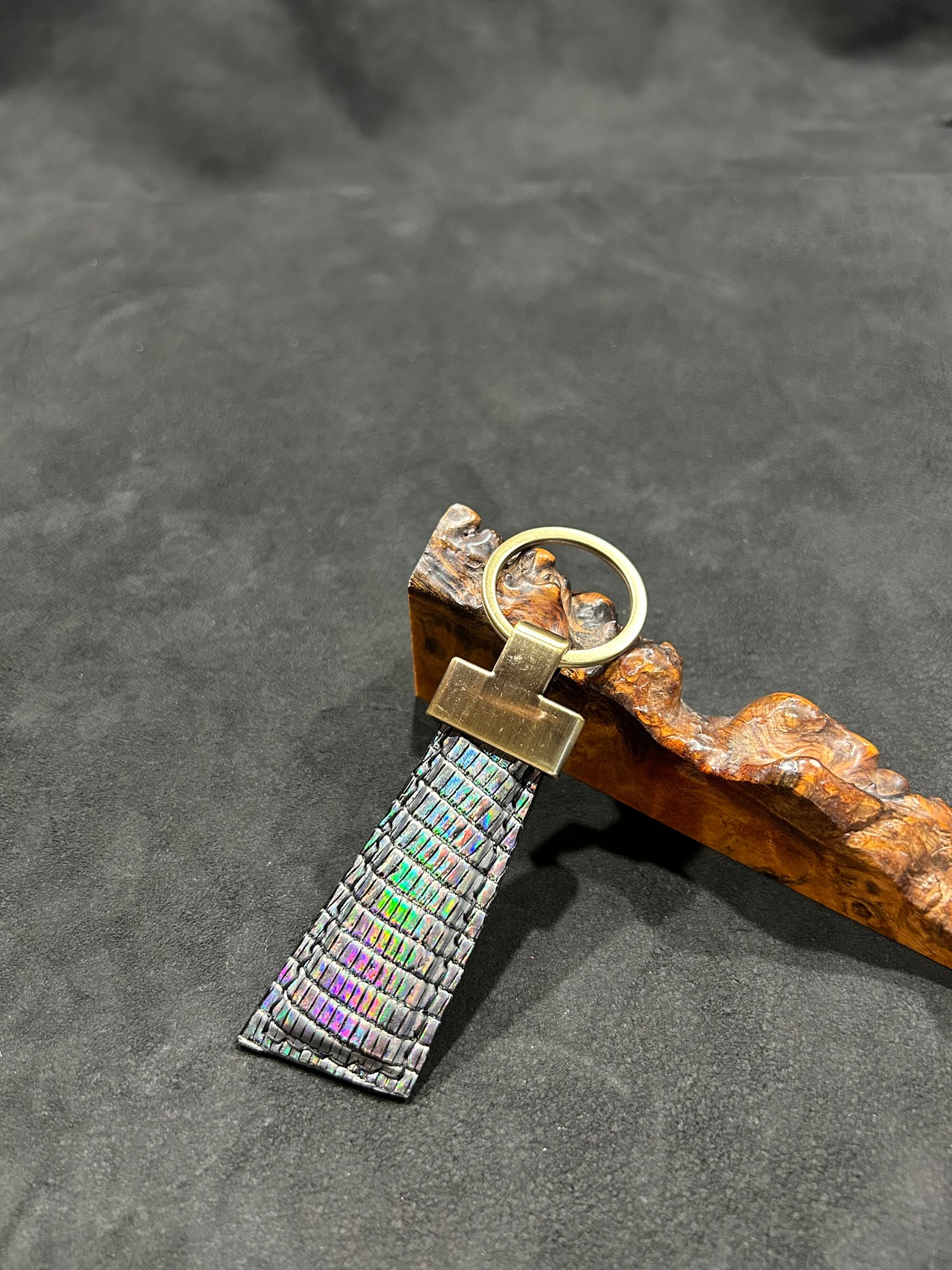 キーホルダー リザードホログラム×猪革迷彩