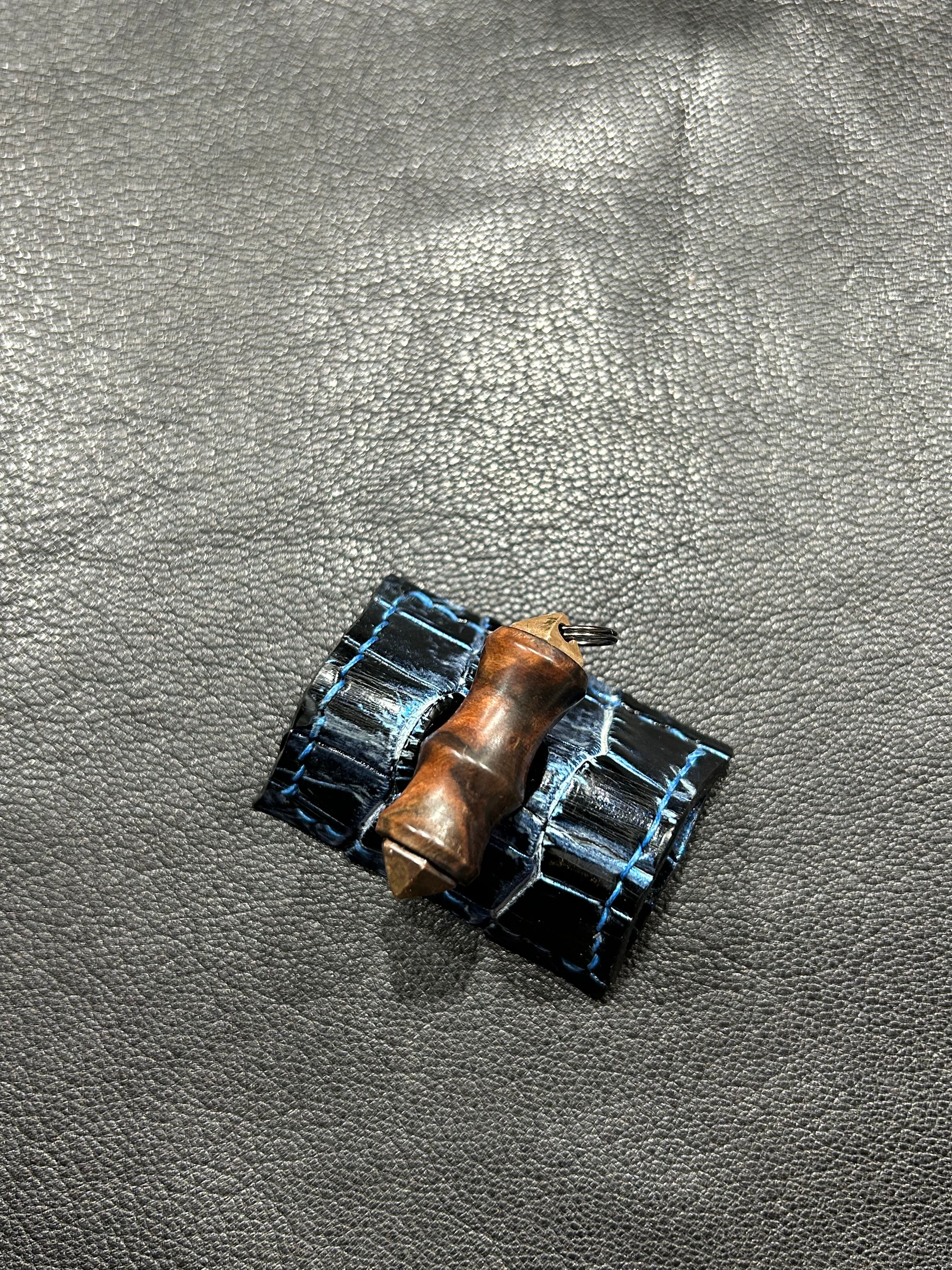 木軸キーホルダー 黒檀瘤 オリジナルシルバー金具 燻し