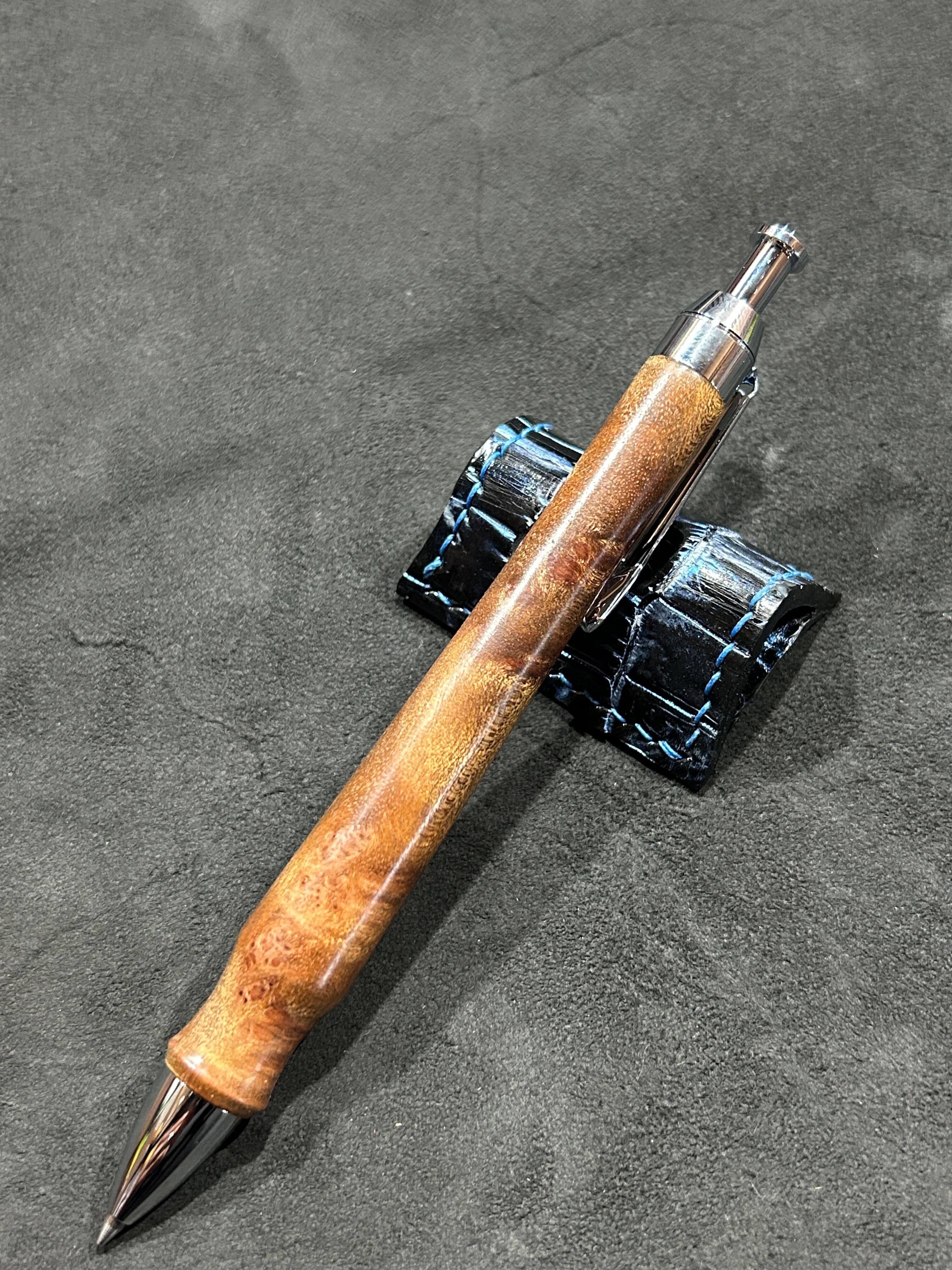 金色にギラギラ綺麗な杢目ですが、瘤材特有のピンホールがあります。