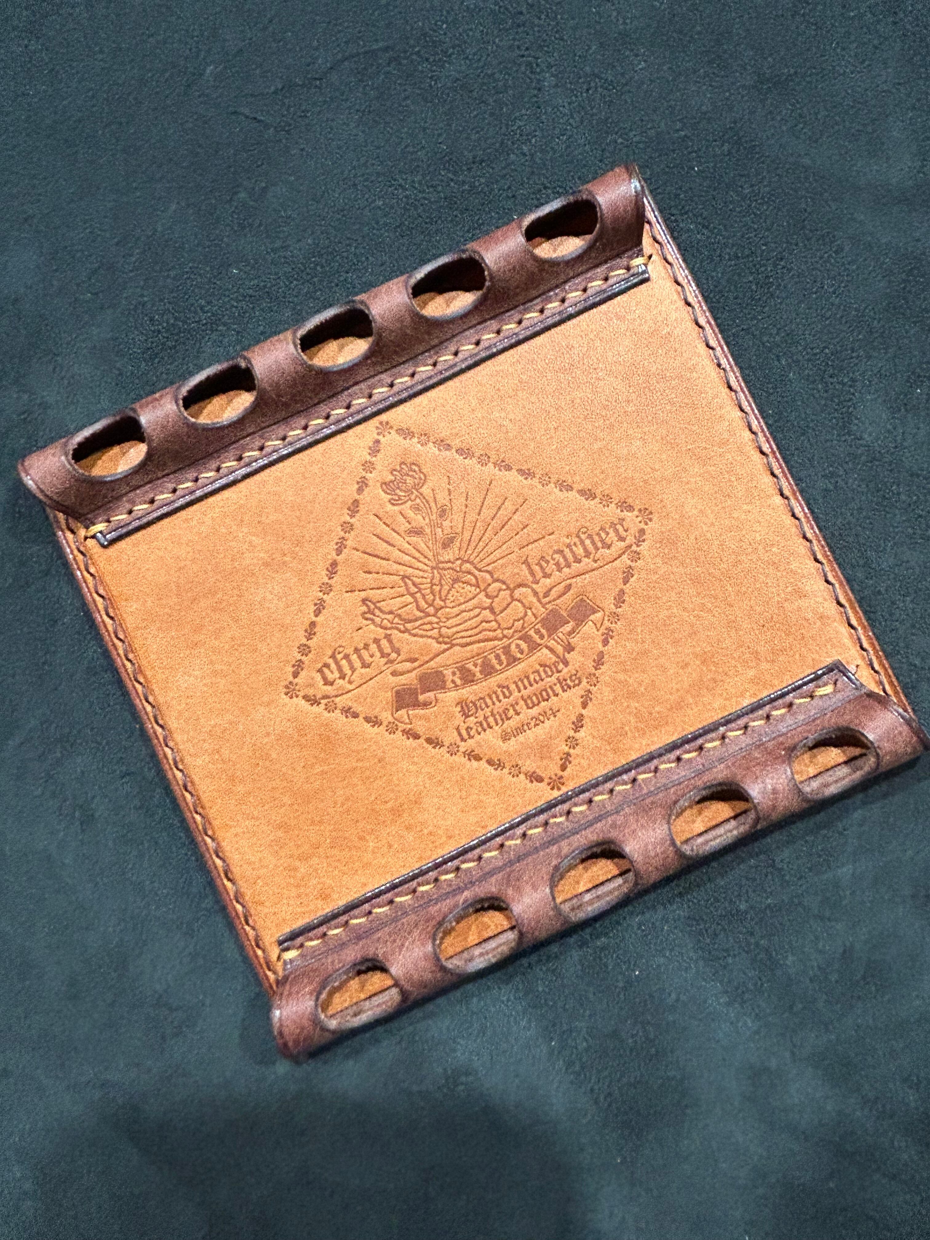 5本用で革で制作したペントレイにもペンレストにもなることから