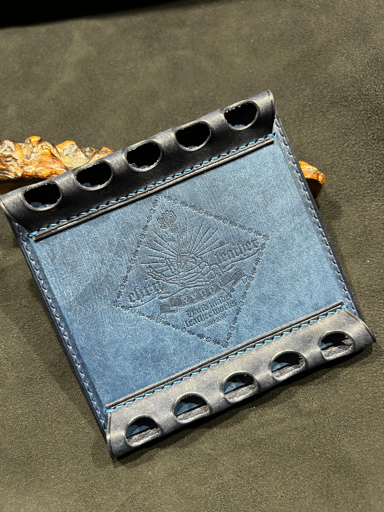 革で制作した、ペントレイにもペンレストにもなることから