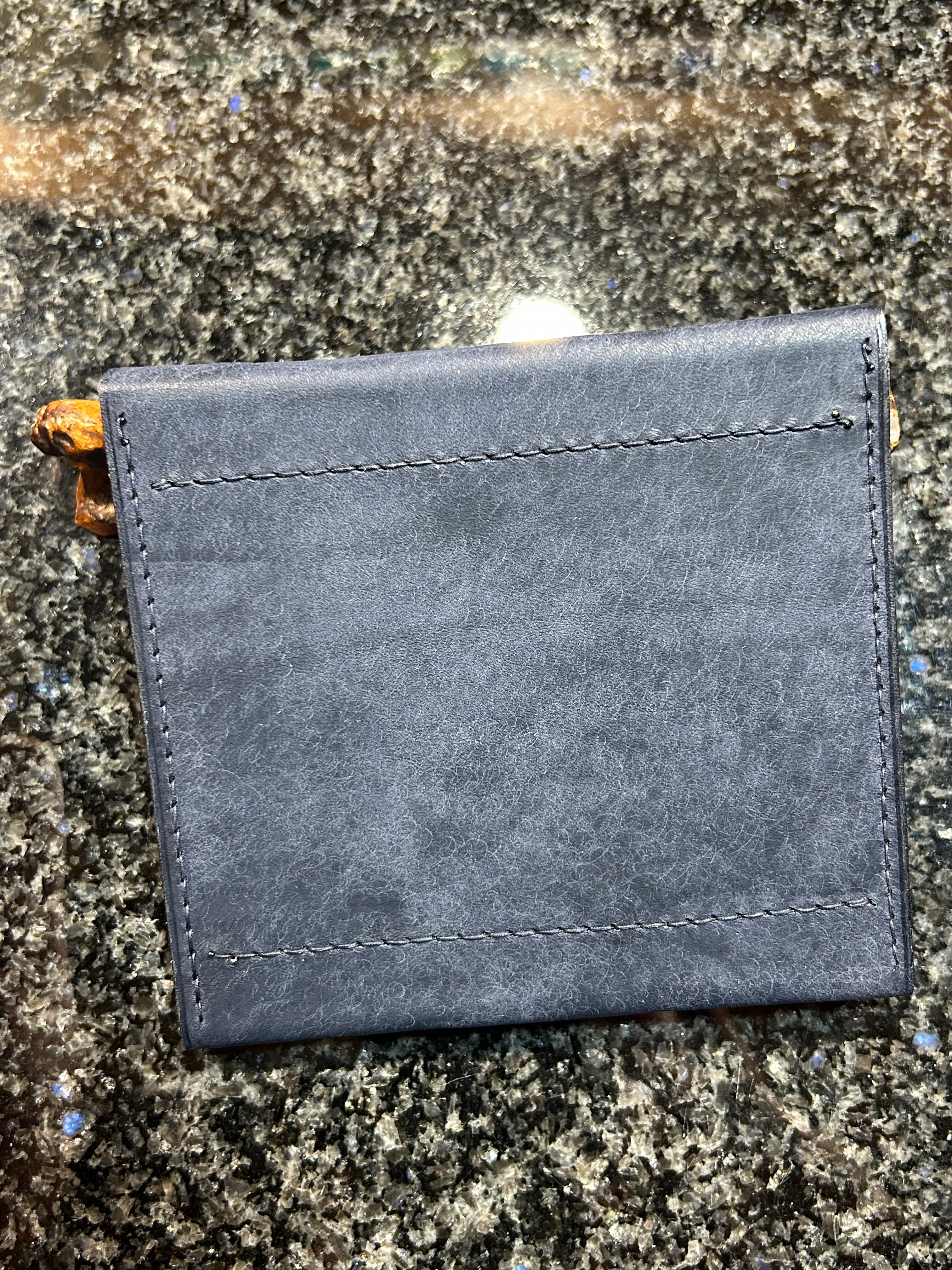徳島のすくも藍とインド藍それぞれ使い染め付けた拘りの革です。